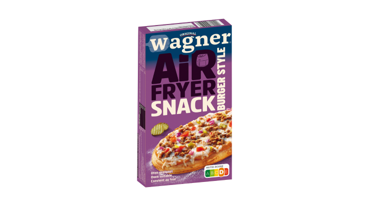 La recette spéciale Air Fryer garantit que la pâte à pizza classique atteigne une texture optimale. Ce snack polyvalent peut également être préparé parfaitement au four traditionnel. Que ce soit comme en-cas rapide ou comme petit dîner, le snack Burger Style Air Fryer original de Wagner est le choix idéal pour tous ceux qui apprécient le plaisir simple d’un burger en version pizza.